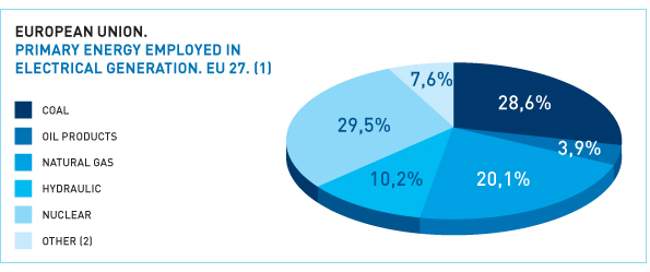 EUROPEAN UNION. PRIMARY ENERGY EMPLOYED IN ELECTRICAL GENERATION. EU 27(1)