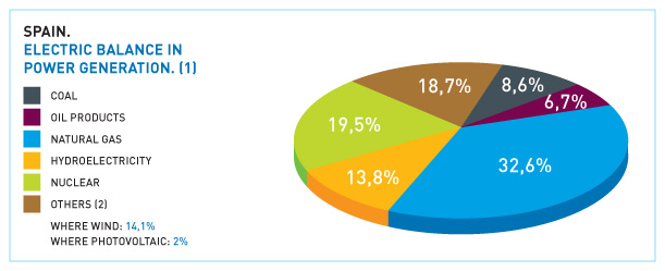 The initial months of 2010 were also significant in terms of the power from renewable sources. This can be explained by the strong increase in wind generation (40% in the first term, with instantaneous wind power generation standing at a record of almost 13,000 MWh, on February 24, for instance) and hydroelectric energy, with a 90% progression in the first third of the year (February was the wettest month in the last twenty years). This situation left limited breathing space for non-basic thermal generation, such as coal groups and natural gas combined cycles.