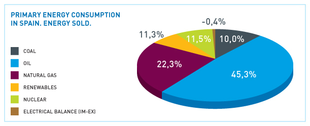 Oil is slowly but surely developing a slight downward trend as regards the share (45% in 2011) it represents within the Spanish energy mix, already under 50% over the past few years.